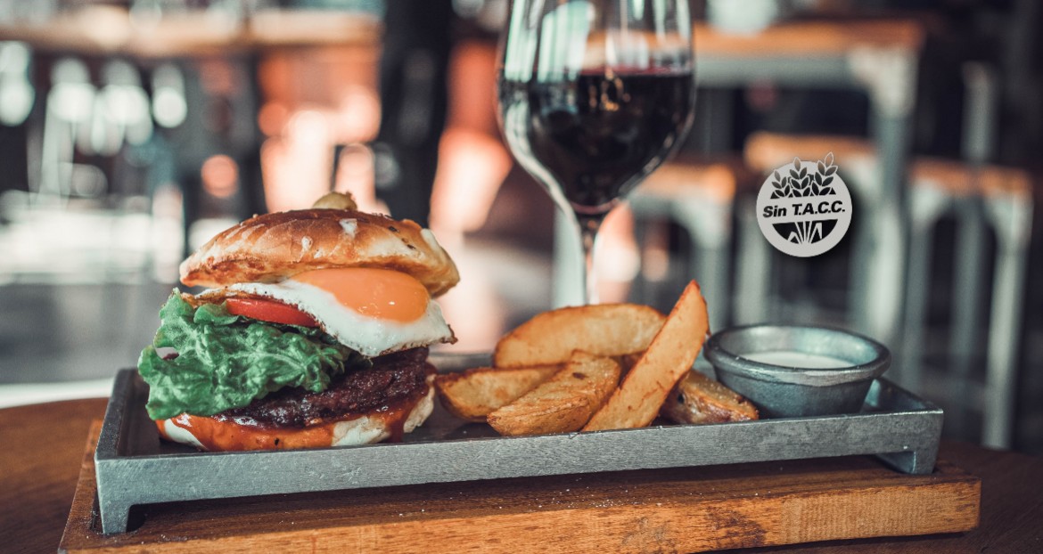 Pan casero con medallón de carne ahumada, mozzarella, rúcula, tomate, cebollas caramelizadas, champiñones, barbacoa y mayonesa casera. Papas rusticas fritas.