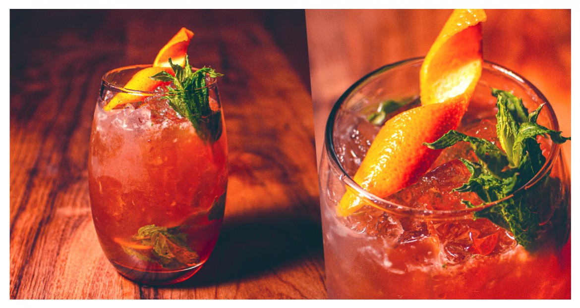 Ron Havana añejo, whisky Johnnie W , licor Amaretto, bitter Campari, jugo de limón, ananá, almíbar de canela.