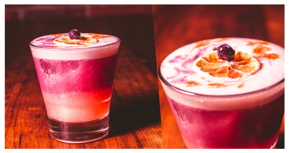 Tinto de la casa Malbec, whisky Jameson, almibar de frutos rojos, jugo de limón, clara de huevo.