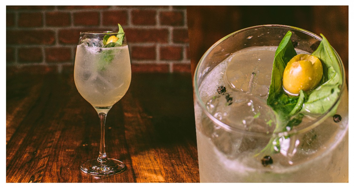 Tequila José cuervo, Martini Bianco macerado con olivas, jugo de limón, tabasco, tónica.